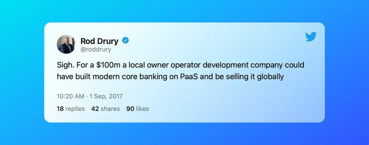 It is as if every bank or large business has unique, arcane and esoteric processes that can only be covered by expensive and risky software rewrites.